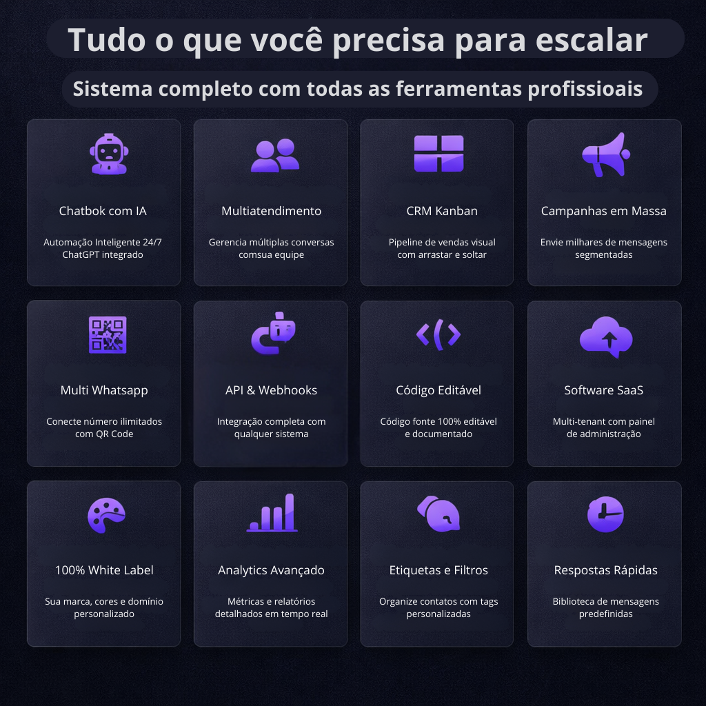 Centralize o atendimento do WhatsApp e equipes em um único ambiente, com controle, organização e automações com IA (ChatGPT) que aumentam a produtividade e a qualidade do atendimento.