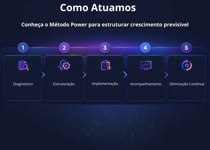 Diagnóstico e estruturação de processos comerciais, definição de métricas, modelos de vendas e estratégias orientadas a resultados, com aplicação do Método Power.